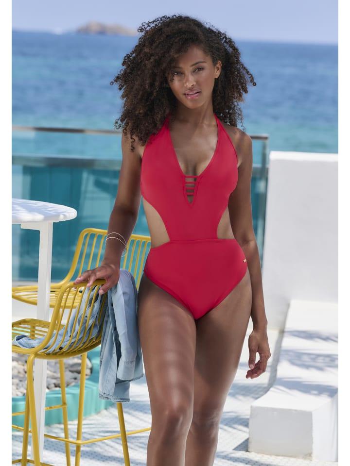 Монокини от Buffalo в модном однотонном цвете. Соблазнительный дизайн с вырезами и очень глубоким V-образным вырезом. Бретелька через шею с завязкой. Съемные мягкие чашки. С застежкой сзади. С содержанием переработанного полиамида.