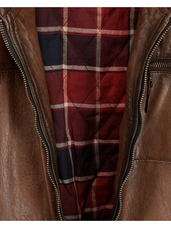 Современная кожаная куртка для мужчин от модного бренда Mustang. Эту классическую кожаную куртку отличает повседневный и современный крой, а также подкладка в стиле лесоруба. Благодаря классическому крою эту кожаную куртку можно комбинировать по-разному. - В байкерском стиле, застегивается на молнию