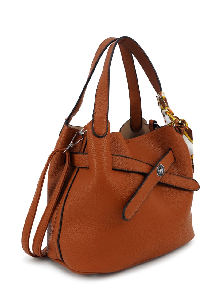Эта сумочка от бренда HARPA по-настоящему притягивает взгляды благодаря своему вневременному классическому дизайну, выполненному из мягкой фактурной искусственной кожи. Дизайн дополняет декоративный шарф. Передняя часть сумки украшена художественной петлей из искусственной кожи. Кроме того, сумка имеет съемный внутренний карман, который можно использовать как основное отделение или отдельно. Размеры 24,5 x 22 x 15 см идеально подходят для повседневного использования. Сумка имеет регулируемый плечевой ремень и двойную ручку. - Сумка из мягкой фактурной искусственной кожи