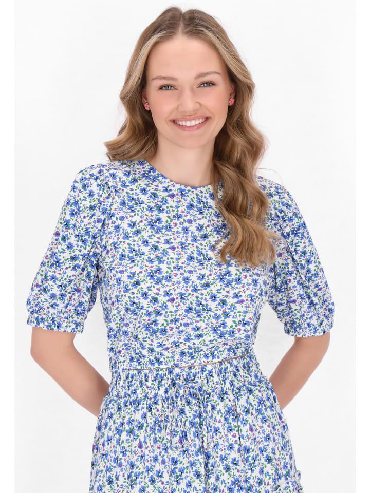 Откройте для себя эту модную блузку из коллекции Весна-Лето. Она имеет стандартный крой, круглый вырез и короткие рукава, дополненные милыми буфами. Изготовлена из тканого материала, украшенного цветочным принтом, и станет идеальным выбором для молодых любительниц моды. Эта модель идеально подходит для летнего стиля, сочетая стиль и комфорт.