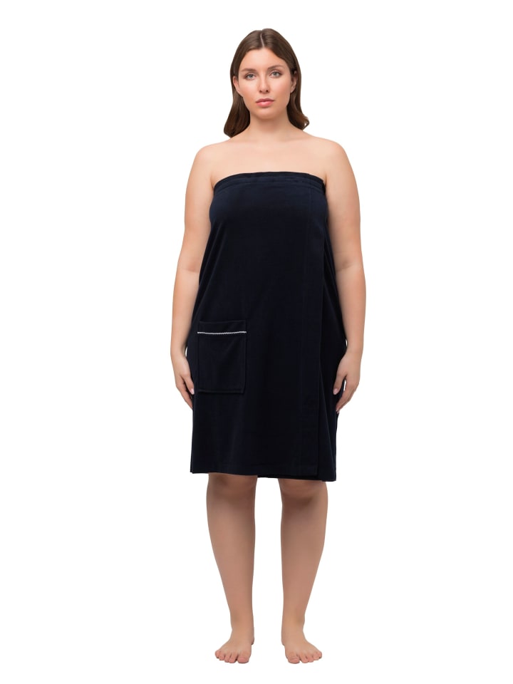 Махровый килт с застежкой-липучкой. Эластичные манжеты сзади, накладной карман.
