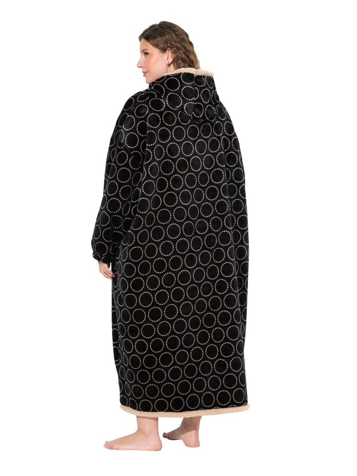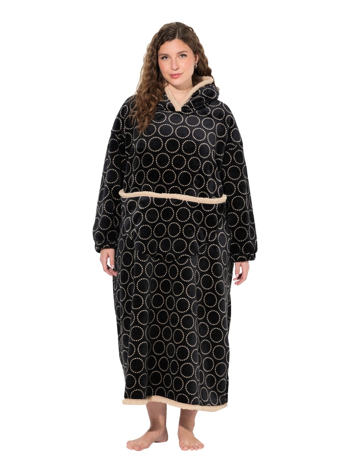 Пончо А-силуэта из плюша с рисунком. Мягкий, приятный на ощупь и очень теплый, с внутренней частью из уютного плюшевого флиса, который виден по краям. Широкий капюшон, спущенная линия плеча, длинные рукава. Большой передний карман.