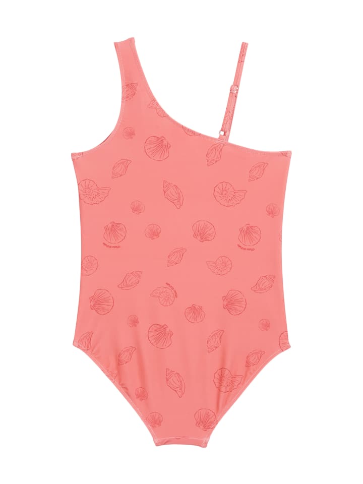 Лето, солнце, ощущение отпуска: этот очаровательный купальник с нежным принтом в виде ракушек идеально подходит для долгих часов отдыха у воды. Асимметричное решение бретелей придает модели особый шарм: широкий ремешок с декоративным бантом сочетается с узким, регулируемым по длине ремешком для оптимальной поддержки. Купальник изготовлен из сохраняющей форму, быстросохнущей полиамидной смеси, обеспечивает комфорт при ношении и долговечность. Подкладка завершает комфортный дизайн. Стильный спутник для солнечных дней — удобный, продуманный до мелочей и с летним настроением. - купальник ПОДРОСТКИ-ДЕВОЧКИ
