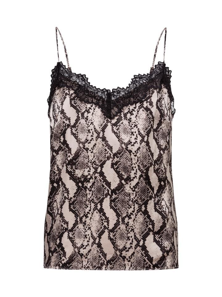 Блузка-топ Nuvictoria от Nümph, выполненная из струящейся вискозы, придает образу стильный вид благодаря принту под рептилию и фестончатому кружеву. - повседневный крой