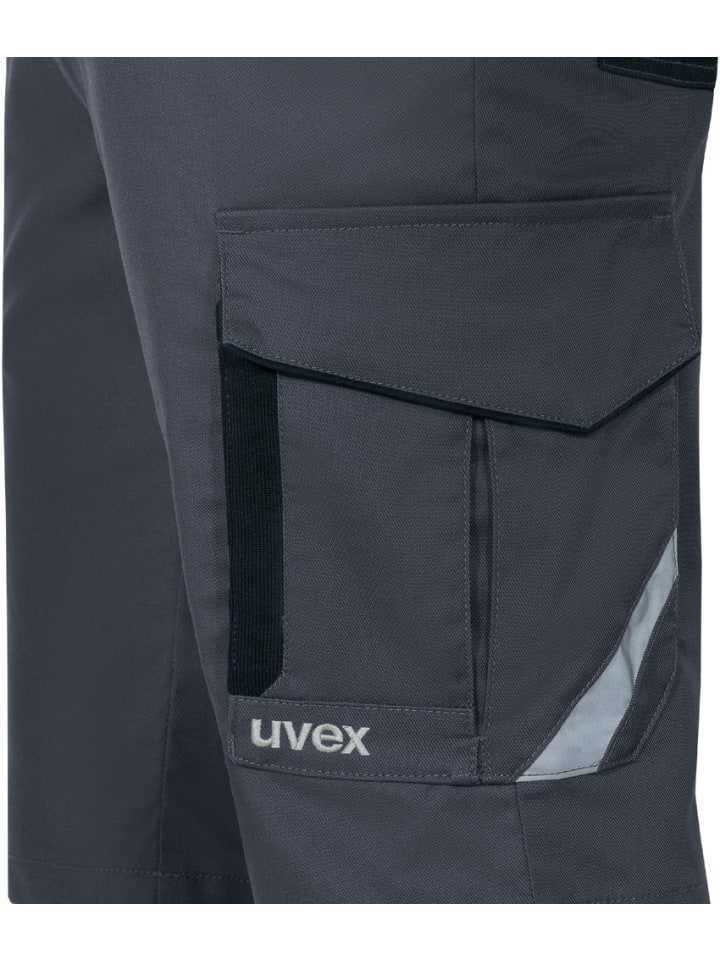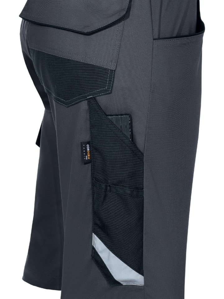 Шорты-бермуды мужские UVEX suXXeed Industry Материал: 49% полиэстер, 49% хлопок, 2% эластан, прибл. 260 г/м² Эластичный пояс Два кармана сзади и на бедрах, каждый из которых усилен CORDURA Встроенный карман для линейки, мобильного телефона и инструментов Светоотражающие детали Размеры: 42-66 (доплата за большие размеры: от размера 54 +10%) Инструкции по уходу: Обычная стирка 60°C, PRO 8, не отбеливать, возможна сушка в стиральной машине, низкая температура 60°C, щадящий процесс сушки, гладить при максимальной температуре подошвы 150°C, профессиональная химчистка с перхлорэтиленом и/или углеводородами, обычный процесс