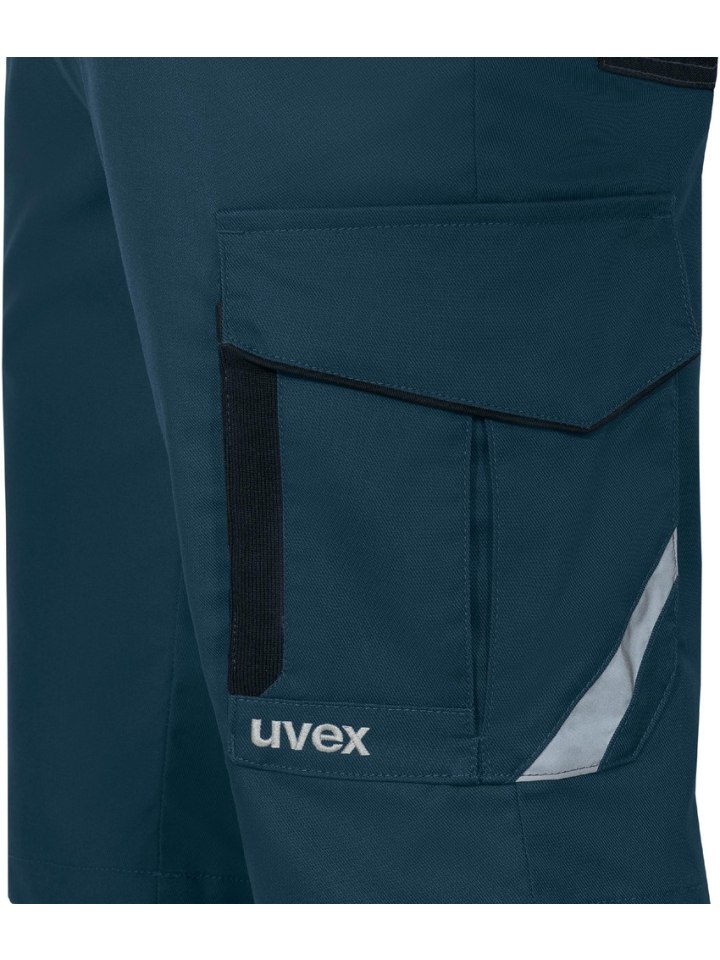 Шорты-бермуды мужские UVEX suXXeed Industry Материал: 49% полиэстер, 49% хлопок, 2% эластан, прибл. 260 г/м² Эластичный пояс Два кармана сзади и на бедрах, каждый из которых усилен CORDURA Встроенный карман для линейки, мобильного телефона и инструментов Светоотражающие детали Размеры: 42-66 (доплата за большие размеры: от размера 54 +10%) Инструкции по уходу: Обычная стирка 60°C, PRO 8, не отбеливать, возможна сушка в стиральной машине, низкая температура 60°C, щадящий процесс сушки, гладить при максимальной температуре подошвы 150°C, профессиональная химчистка с перхлорэтиленом и/или углеводородами, обычный процесс