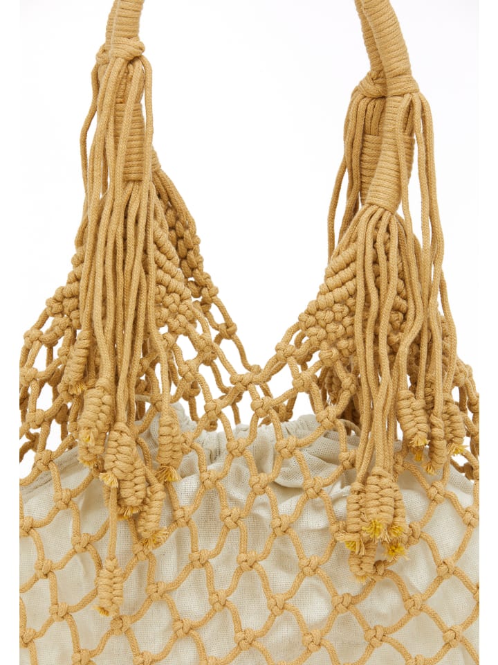 Представляем уникальную сумочку с замысловатым сетчатым дизайном, с сетчатой внешней частью для видимости. Эта сумка через плечо может похвастаться прочными ручками и присборенным отверстием, закрепленным узором ajour. Декоративные кисточки и внутренний карман добавляют изящества и функциональности, а застежка на шнурок делает ее идеальной для повседневных случаев.