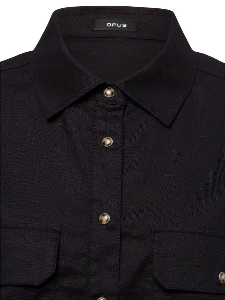 Блузка-рубашка OPUS Fringo сочетает в себе вечную элегантность и повседневный шик в укороченном свободном крое, выполненном из структурированной смеси хлопка и льна и украшенном стильной кокеткой сзади и двумя практичными карманами с клапанами на груди. - свободный укороченный крой
