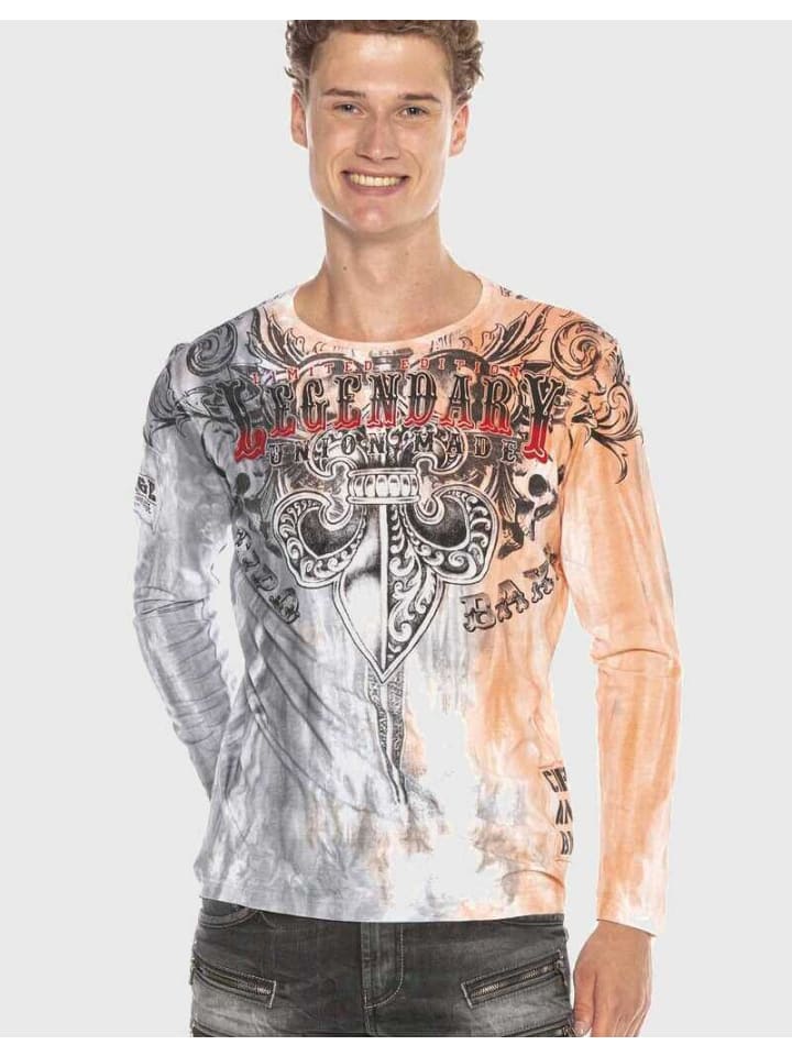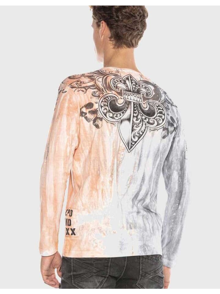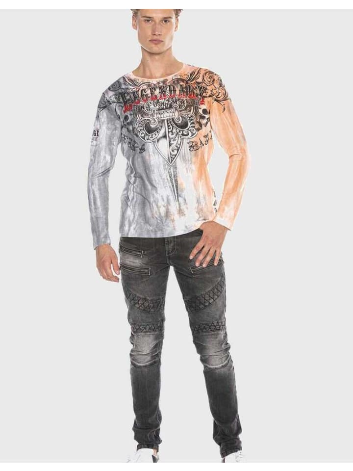 Этот свитер от бренда Cipo \u0026 Baxx для мужчин впечатляет своим модным стилем. Высокое качество изготовления делает его удобным в носке и легко дополнит любой ваш наряд. Сочетание интересного цветового градиента и крупного орнаментального принта на груди и спине гарантированно привлечет восторженные взгляды — желанный всплеск цвета в серую осенне-зимнюю пору. Модель выполнена из хлопка и эластана, имеет свободный крой и гарантированно подчеркивает фигуру благодаря облегающему крою. — Комфортный мужской свитер Cipo \u0026 Baxx