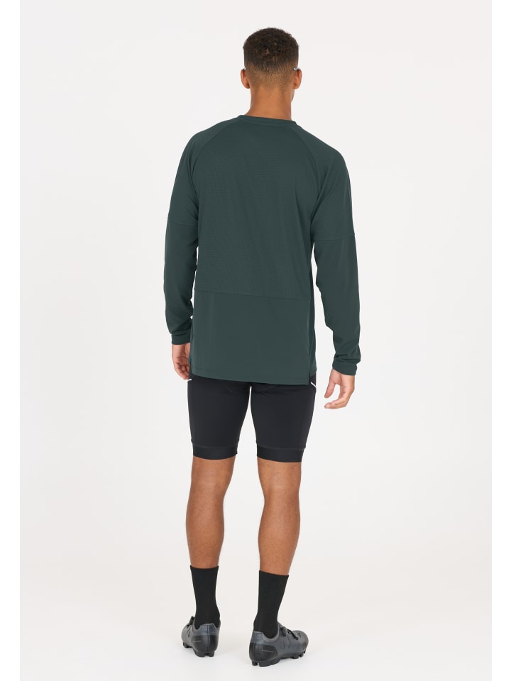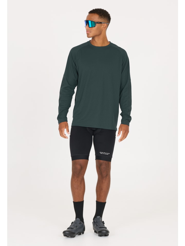 Велосипедная майка с длинными рукавами «Elang» от Endurance — идеальный выбор для спортивных мужчин, которые ценят комфорт и функциональность во время езды на велосипеде. Воздухопроницаемый материал обеспечивает приятную вентиляцию, а технология быстрого высыхания эффективно отводит влагу. Благодаря практичному карману на молнии в джерси можно хранить самые важные вещи. Светоотражающие детали повышают видимость и безопасность в условиях плохой освещенности. Джерси «Elang» — идеальный выбор для тех, кто хочет наслаждаться велопрогулками стильно и функционально. - Мужская велосипедная майка с длинными рукавами от Endurance