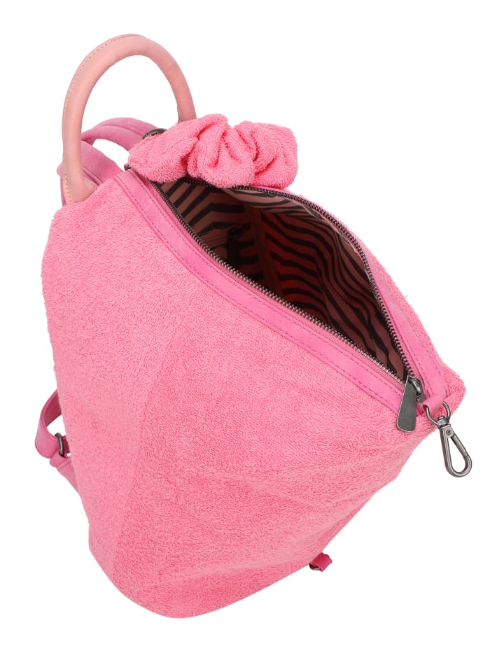 С рюкзаком «Marit Frottee Limited Barbie» у вас под рукой будет милый и практичный рюкзак из мягкой махровой ткани летнего качества. В сотрудничестве с брендом Barbie компания fritzi 2025 выпускает лимитированную капсульную коллекцию с избранными моделями кукол fritzi в великолепных культовых образах Барби. Вышитый сбоку логотип Барби и декоративная резинка для волос из махрового материала сумки гармонично дополняют женственный повседневный образ. Благодаря большому объему и практичным внутренним отделениям этот рюкзак станет вашим абсолютным любимым спутником в суете повседневной жизни. Внутренняя часть модели очаровывает зигзагообразным узором и множеством небольших логотипов Барби, напечатанных на нем. Удобные плечевые ремни можно индивидуально отрегулировать до идеальной длины — именно так, как вам нравится! - Веганский рюкзак ограниченной серии из мягкого махрового материала