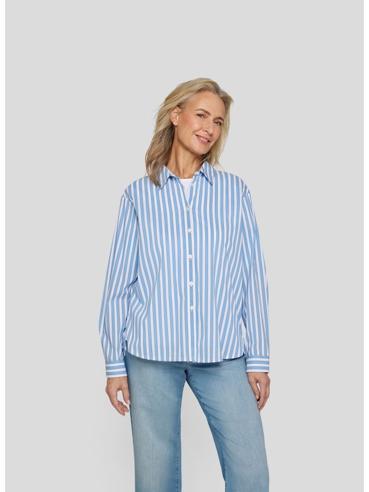 Классический рубашечный воротник и длинная планка с пуговицами придают изделию элегантный вид, а свободный крой обеспечивает удобство при ношении. Женственный полосатый дизайн для свежего образа. Классический рубашечный воротник и длинная планка с пуговицами. Высококачественная, легкая хлопковая смесь, приятная на ощупь. Длинные рукава можно закатать, чтобы придать изделию непринужденный вид.