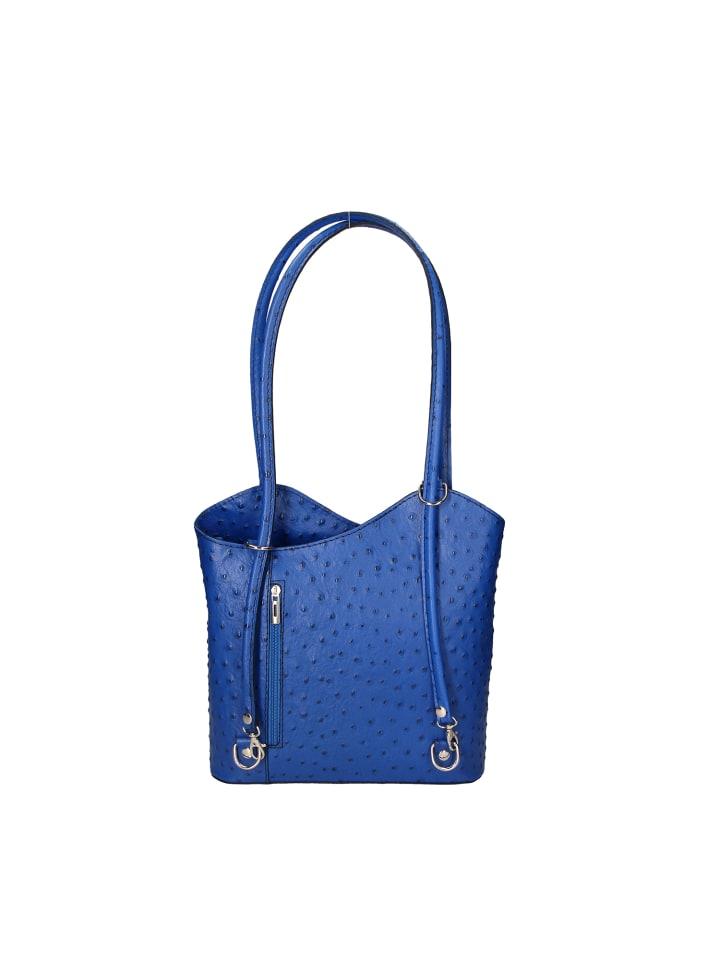 Женская сумка с ручками, трансформирующаяся в рюкзак, из натуральной кожи страуса. Изделие ручной работы итальянского производства. Сделано в Италии 25,0 x 28,0 x 9,0 см