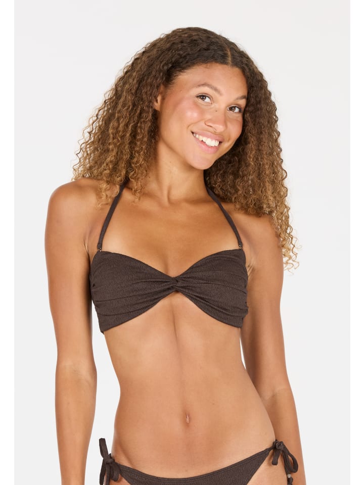 С верхом-бандо бикини «Larinie» вы будете в идеальном состоянии для прекрасных дней в воде и около нее! Верх бикини имеет стильный перекрученный дизайн и особенно удобен в носке благодаря своим влагорегулирующим свойствам. Материал обладает УФ-защитным эффектом. Чашечки мягкие и обеспечивают комфортную поддержку. Застежка-халтер позволяет вам регулировать бретели и элегантно и легко застегивать верх бикини. - Спортивный и женственный верх бикини от Athlecia