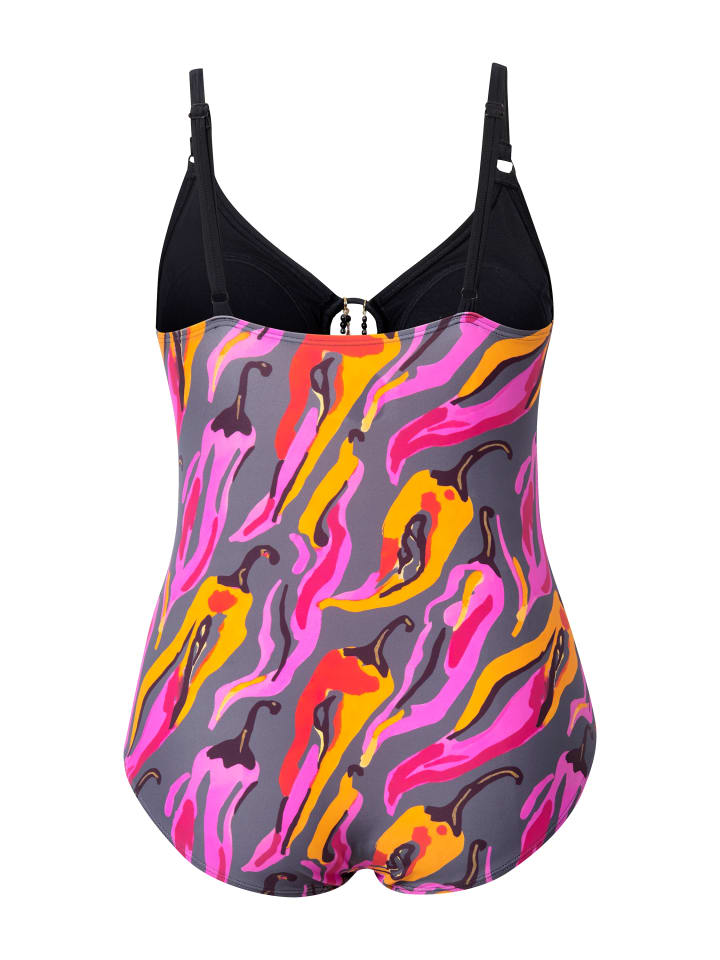 Купальник с мягкими чашечками и рисунком в виде острого перца чили. Однотонный бюстгальтер с соответствующим декоративным кольцом, пояс под грудью, подкладка спереди. С переработанным полиамидом. OEKO-TEX.