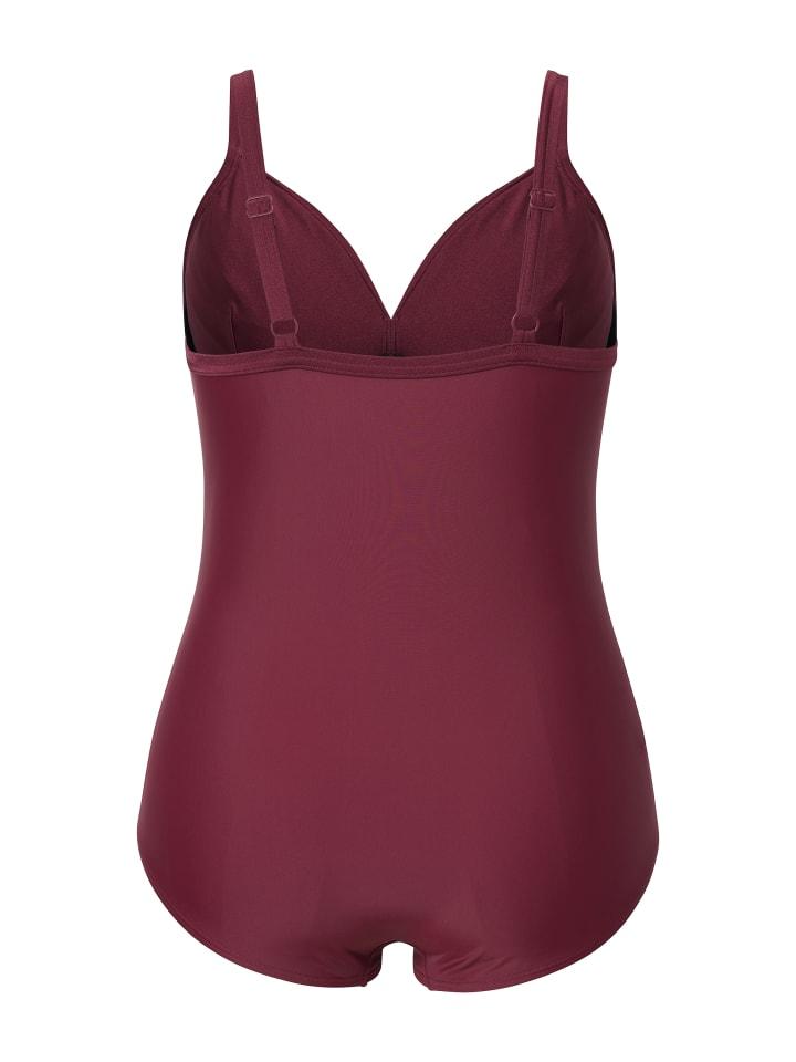 Купальник без мягких чашек. Элегантное сочетание матового и глянцевого с декоративным кольцом в V-образном вырезе. Регулируемые лямки, подкладка спереди. Изготовлено из переработанного полиамида. OEKO-TEX.