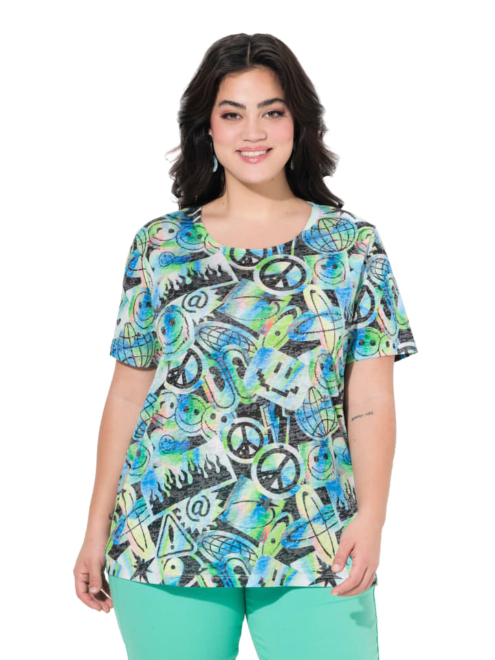 Футболка удобного кроя из мягкого трикотажа с принтом в виде смайлика. Круглый вырез, короткие рукава.