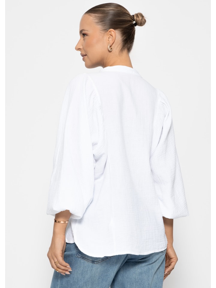 Эта воздушная муслиновая блузка сочетает в себе повседневную элегантность и непревзойденный комфорт. Мягкая, дышащая ткань облегает фигуру и обеспечивает свободную посадку, а широкие рукава «летучая мышь» придают модели стильную легкость. Неброские резинки на манжетах добавляют элегантные акценты и гарантируют идеальную посадку. Планка с пуговицами по всей длине обеспечивает разнообразные варианты стилизации — можно носить ее как расстегнутой поверх топа, так и застегнутой, как современный акцентный элемент гардероба. В сочетании с джинсами для создания непринужденного образа или с брюками для создания элегантного образа эта блузка станет универсальным фаворитом в любом гардеробе. - Модель носит размер S и ее рост 174 см