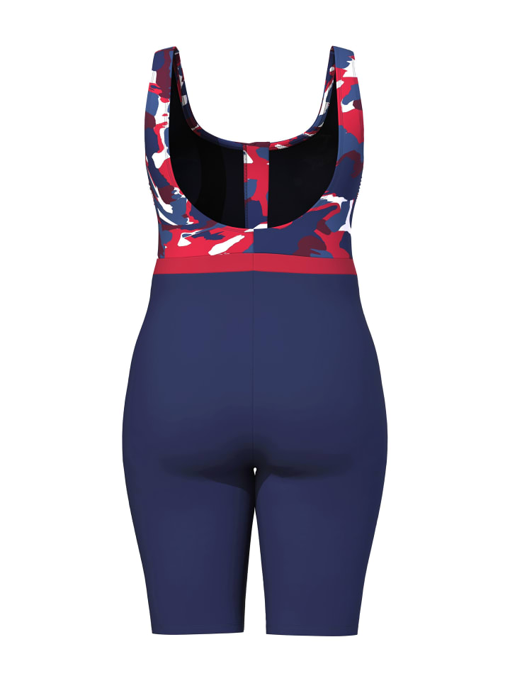 Купальник без мягких чашек, с длинными штанинами. Бюст с принтом, круглая горловина с застежкой-молнией. Бюст присборен сбоку, пояс под грудью, подкладка спереди. Изготовлено из переработанного полиамида OEKO-TEX.