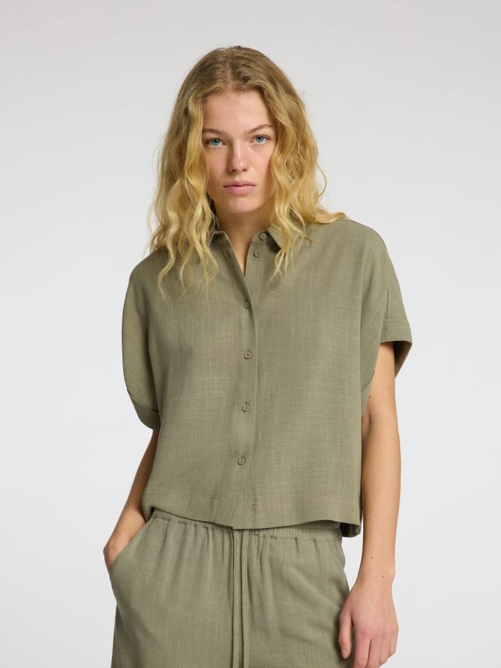 ---- SLFVIVA SS УКОРОЧЕННАЯ РУБАШКА NOOS SELECTED FEMME Женская блузка с элегантной застежкой на пуговицы. Рубашечный воротник, короткие рукава, прямой подол ----/ Изделие соответствует размеру. / Материал: 85% вискоза, 15% лен / Посадка: стандартная / Застежка: пуговицы 7696 / Инструкции по уходу: машинная стирка при 40°C
