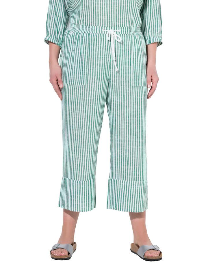Кюлоты из льняной смеси Rose, выполненные из натуральной прохладной и гладкой льняной смеси с полосками. Эластичный пояс с завязкой, накладные карманы.