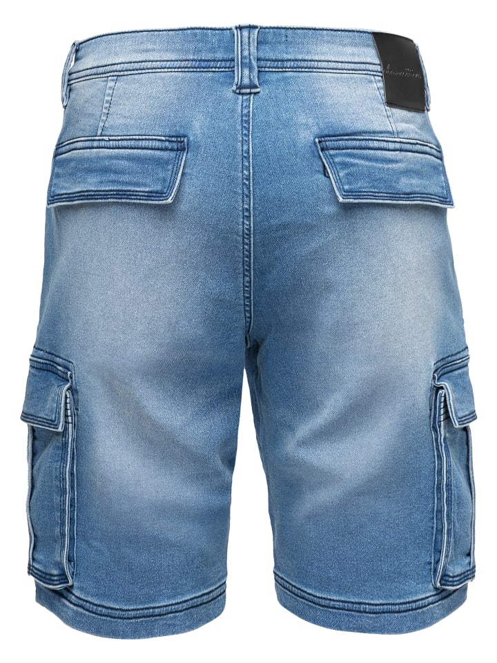 Изюминка: практичные карманы-карго по бокам не только создают модный практичный образ, но и предлагают достаточно места для смартфона, ключей или других необходимых вещей. Классический дизайн джинсовой ткани дополняется легкими эффектами потертости и прочными швами, что придает шортам аутентичный, мужественный вид.