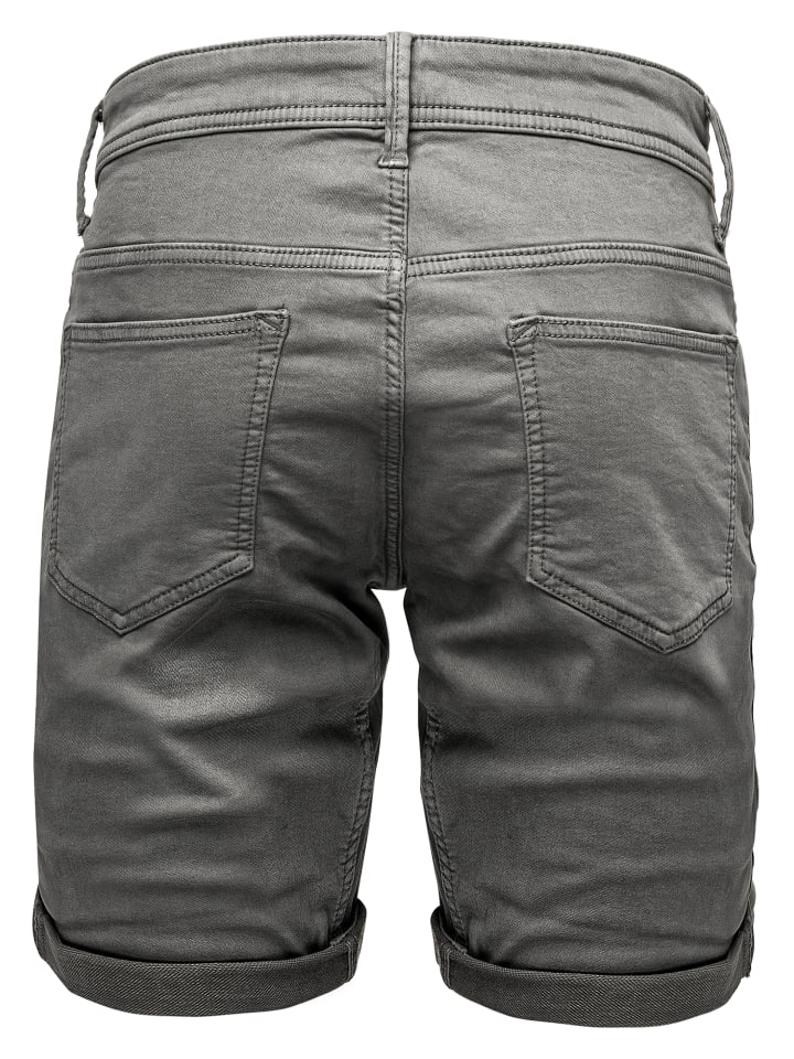 Эти однотонные джинсовые шорты от Amaci\u0026Sons станут настоящим must-have для теплого времени года. Шорты сочетают в себе классический джинсовый дизайн с повседневным современным дизайном — идеальный вариант для мужчин, которые ценят стиль и комфорт. Шорты, изготовленные из высококачественной хлопковой смеси, поражают своим комфортом и долговечностью. Ткань мягкая, дышащая, а ее легкая эластичность обеспечивает оптимальную свободу движений — как для летних занятий, так и для спокойной прогулки по городу. Подвернутый подол добавляет модный акцент и придает шортам непринужденный вид, напоминающий об отпуске, солнце и досуге. Простой дизайн делает их особенно универсальными: с футболкой, майкой или рубашкой эти шорты адаптируются к вашему стилю и могут носиться как в спортивном, так и в повседневно-элегантном стиле. - Однотонный дизайн для универсальных комбинаций