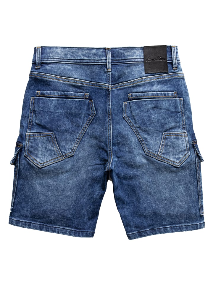 Изюминка: практичные карманы-карго по бокам не только создают модный практичный образ, но и предлагают достаточно места для смартфона, ключей или других необходимых вещей. Классический дизайн джинсовой ткани дополняется легкими эффектами потертости и прочными швами, что придает шортам аутентичный, мужественный вид.