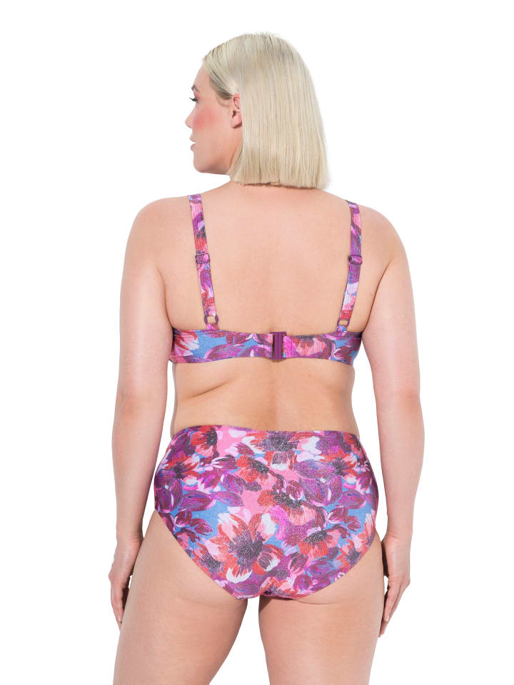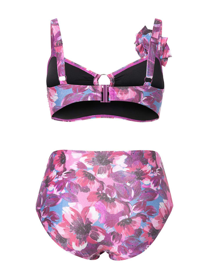 Бикини, раздельный, с блестящим принтом. Топ с мягкими чашками и цветочной брошью, регулируемые бретели, подкладка спереди. Трусики с высокой талией и декоративным кольцом на поясе. Изготовлено из переработанного полиамида. OEKO-TEX.
