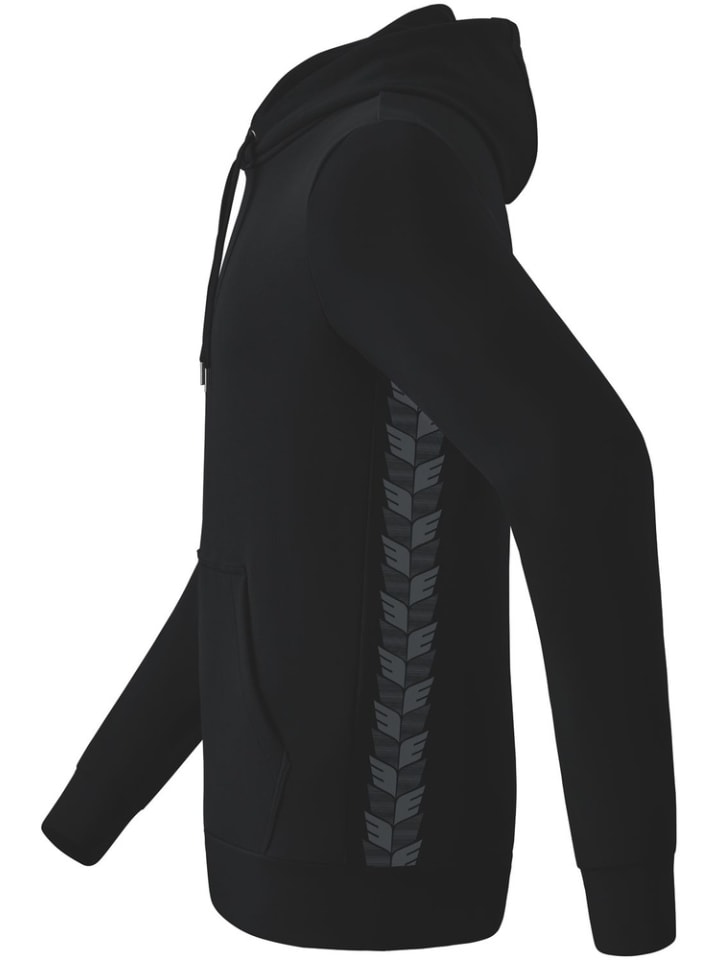 Мягкая хлопковая смесь; Легкая растяжимость для естественной свободы движений; Накладной карман-кенгуру; Капюшон с завязкой; Широкие ребристые манжеты и подол; Детская версия без затягивающегося шнурка на капюшоне; Принт крыла ERIMA сбоку