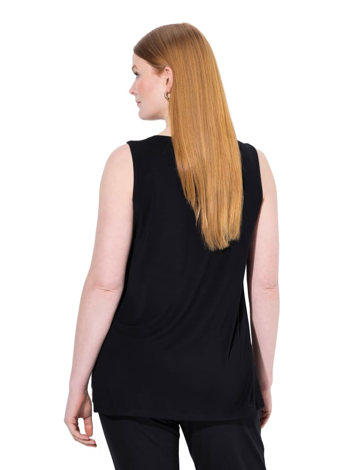 Блузка-топ без рукавов А-силуэта. Передняя часть выполнена из слегка прозрачного шифона с графическим узором в виде листьев и круглым вырезом. Спинка из простого джерси. (95% вискозы, 5% эластана).