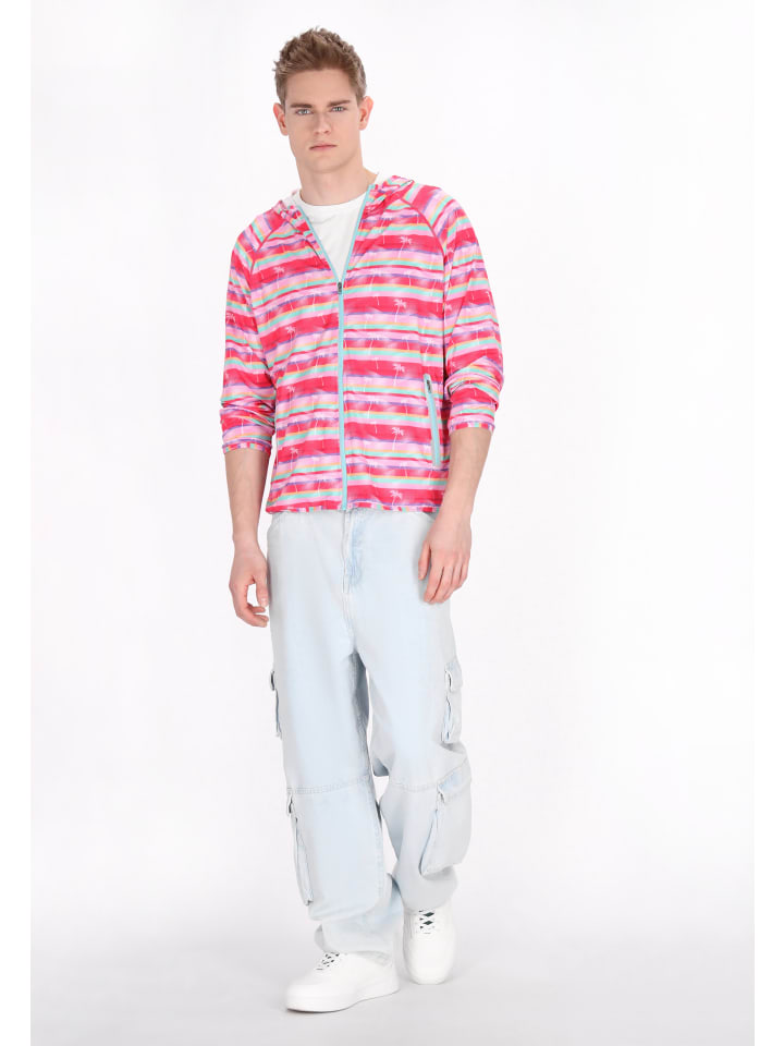Поднимите свой осенний гардероб с помощью этой модной легкой куртки, разработанной для повседневной носки. Регулируемый капюшон добавляет универсальности, а длинные рукава реглан обеспечивают вам комфорт. Ткань с застежкой-молнией по всей длине и карманами на молнии для надежного хранения имеет тропический принт, что делает ее идеальной для повседневной носки. Часть коллекции верхней одежды.