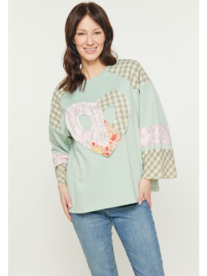 Эта стильная блузка свободного кроя с круглым вырезом и длинными рукавами реглан идеально подходит для повседневной носки. Широкие рукава демонстрируют уникальный рисунок пэчворк, а нашивка в виде цветочного сердца добавляет очарования. Изготовленная из трикотажа, эта удобная модель гардероба идеально подходит для повседневных выходов, гарантируя при этом ваш шикарный вид. Она является частью коллекции Fashion Look.