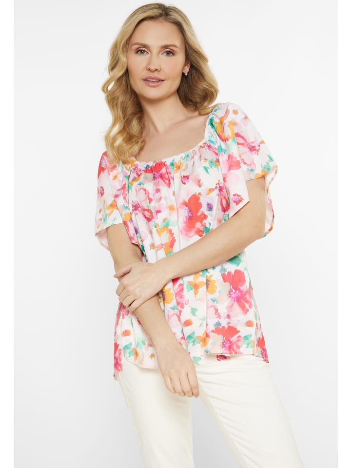 Откройте для себя модную блузку, которая сочетает в себе свободный крой с квадратным вырезом и короткими рукавами, идеально подходящую для повседневных выходов. Короткие оборчатые рукава добавляют шик, а легкая ткань демонстрирует цветочный принт. Эта стильная блузка идеально подходит для повседневной носки, что делает ее обязательным предметом в вашем шкафу. Она является частью коллекции Fashion Look.