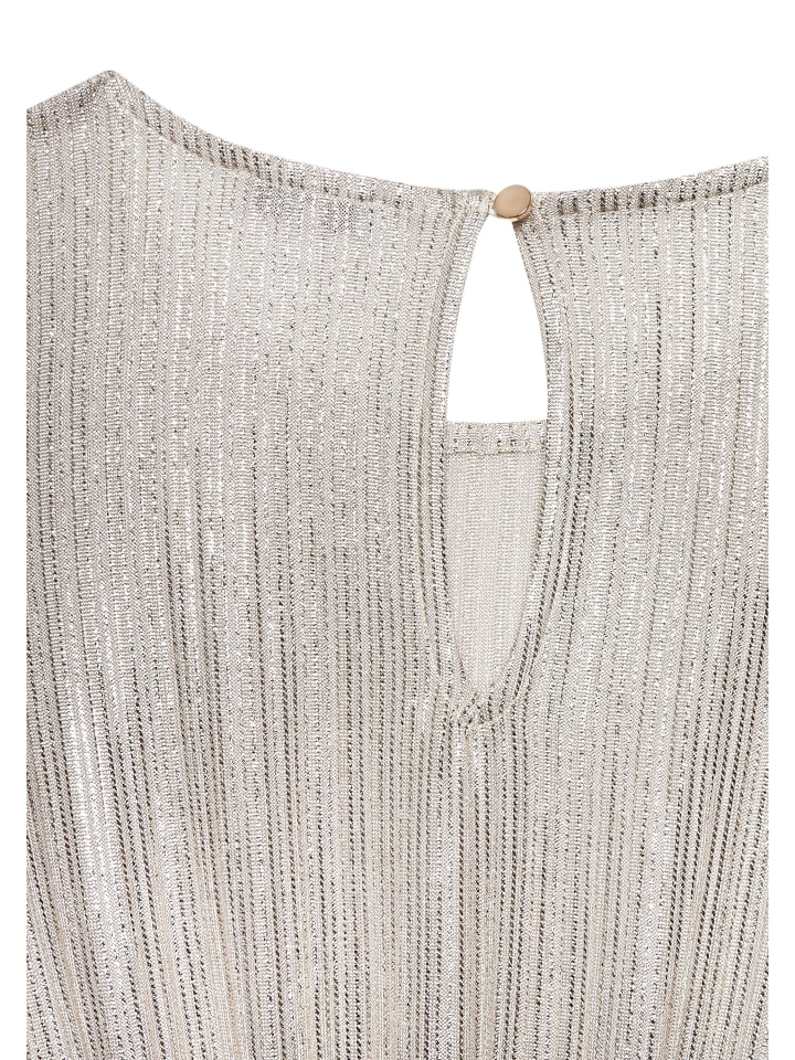 Мини-платье от Lascana. С золотыми блестящими нитями. Круглый вырез, широкие бретели. Разрез с застежкой на пуговицы на шее. Эластичный пояс. Юбка свободного покроя. Качество, не требующее особого ухода.