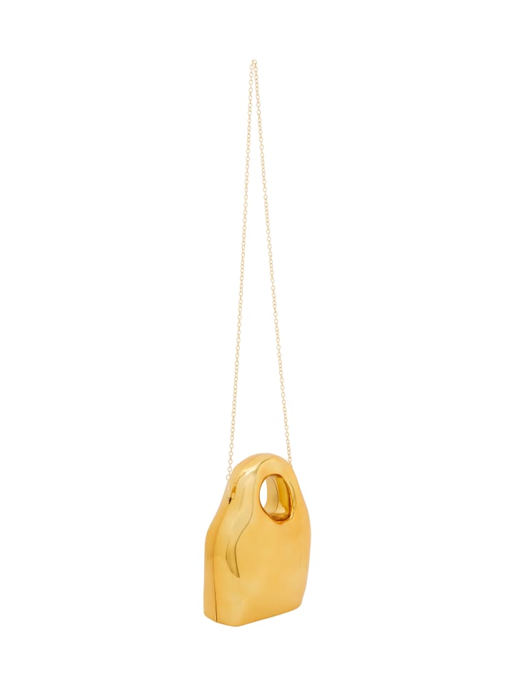 Эта скульптурная композиция может похвастаться гладкой, органической формой с округлым корпусом, сужающимся к основанию. Овальное отверстие сверху служит ручкой или декоративным элементом. Его полированная поверхность прекрасно отражает свет, подчеркивая его современный и минималистский дизайн. Идеально подходит для вечеринок, поставляется с дополнительной цепочкой для универсальности.