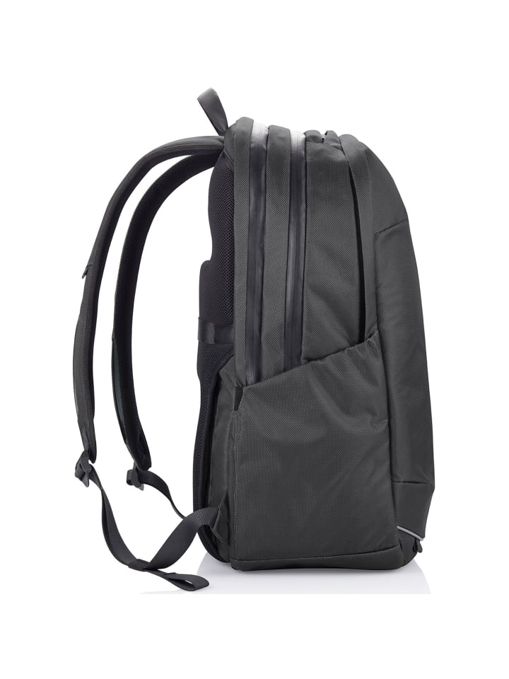 Противоугонный рюкзак от XD Design впечатляет многочисленными функциями безопасности. Изготовлен из водоотталкивающего, устойчивого к разрывам и порезам материала, оснащен скрытыми молниями и ударопрочными мягкими отделениями. Благодаря эргономичной системе переноски обеспечивается оптимальная вентиляция и распределение нагрузки. Другие замечательные особенности включают в себя: просторное основное отделение с расширяющейся верхней складкой, USB-порт для удобной зарядки на ходу, крепление для чемодана на колесиках сзади, мягкое отделение для ноутбука с диагональю экрана до 39,5 см (17 дюймов), потайные карманы на молнии сзади и выдвижной нижний карман в нижнем отделении для транспортировки обуви. - 33см х 20см х 54см