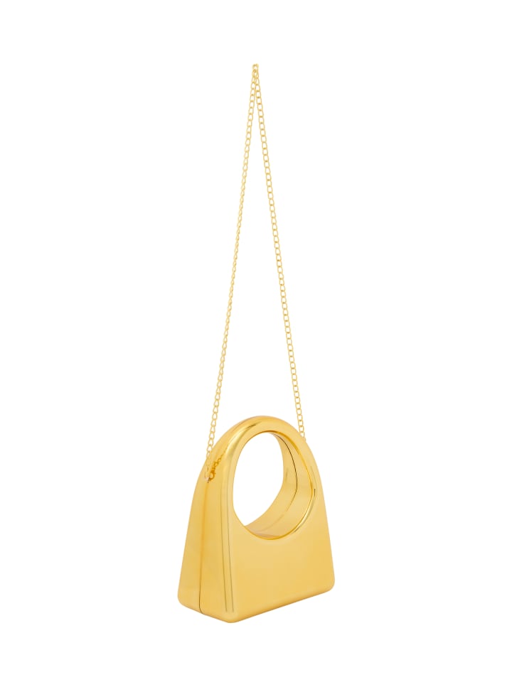 Подчеркните свой стиль с помощью этой потрясающей сумки, которая демонстрирует уникальный силуэт, с закругленным верхом и прямоугольным основанием. Встроенная ручка изящно изгибается для удобства переноски. Ее гладкая поверхность и декоративная застежка усиливают ее шикарную привлекательность. Идеально подходит для вечеринок, эта сумка также включает в себя дополнительную цепочку для универсального ношения.