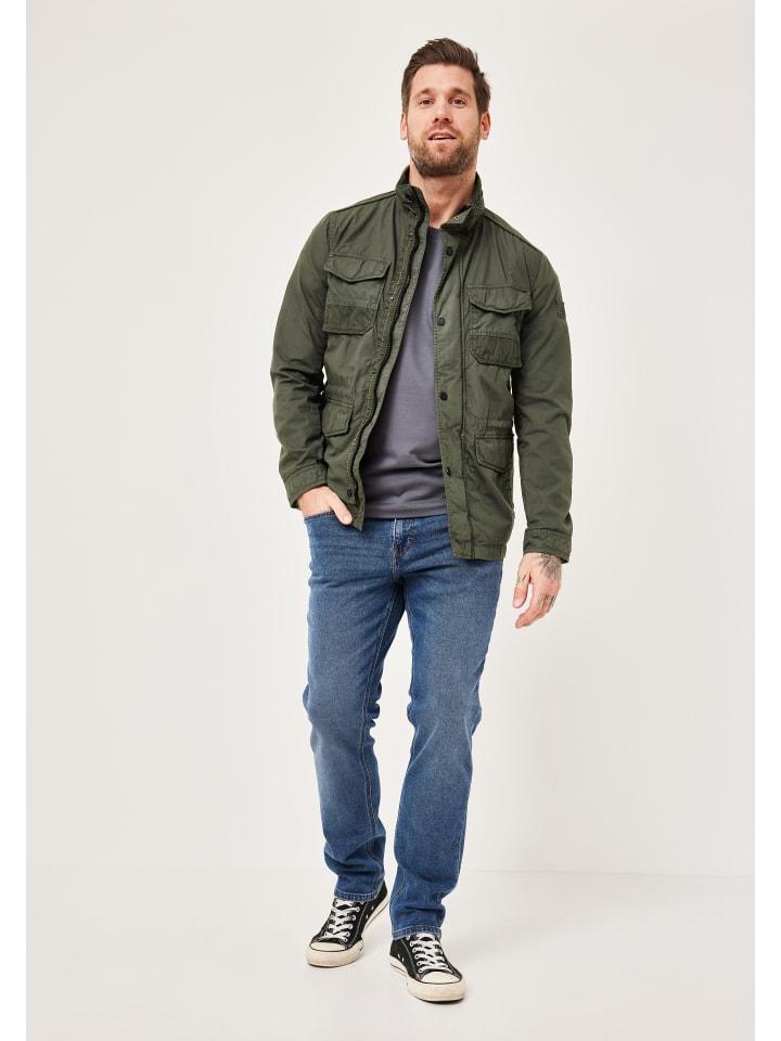 Мужская полевая куртка изготовлена из хлопка и сочетает в себе функциональную универсальность и современный городской вид. Процесс окрашивания изделия придает ему индивидуальный, уникальный цветовой нюанс. Прочная, но легкая хлопковая ткань обеспечивает воздухопроницаемость и комфорт — идеально подходит для переменчивых температур. Классические элементы, такие как практичные карманы или эффектный воротник, стильно демонстрируют повседневный крой. - Переходная куртка в стиле полевой куртки