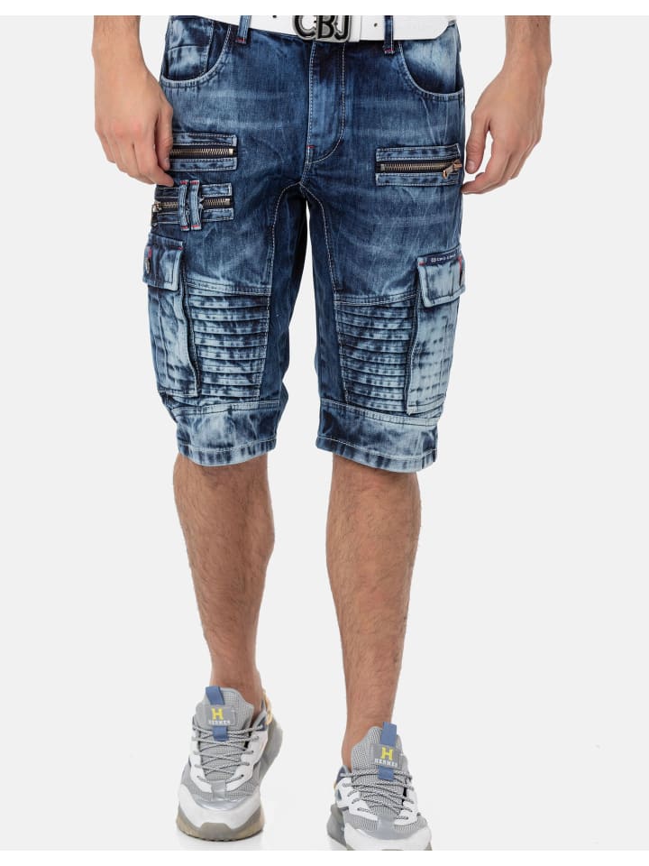 Эти мужские джинсовые шорты от Cipo \u0026 Baxx с ярким дизайном и городским стилем станут настоящим украшением. Застежка-молния позволяет легко надевать и снимать изделие, а эффектные декоративные молнии и накладные карманы идеально сочетают в себе функциональность и стиль. Короткая длина штанины и прочная хлопковая смесь обеспечивают оптимальный комфорт для создания непринужденных повседневных образов с характером. - Привлекательные детали в виде молнии, создающие эффектный образ