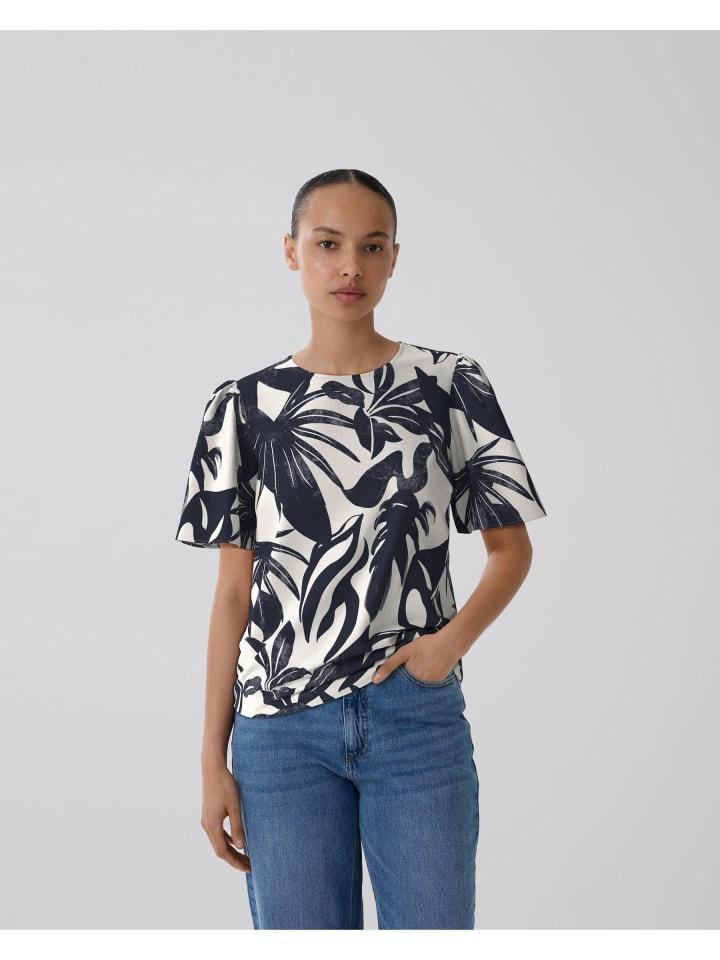 Изготовлено из экологически чистой вискозы. Легкий топ с короткими рукавами и цветочным принтом, идеально подходит для теплого времени года.