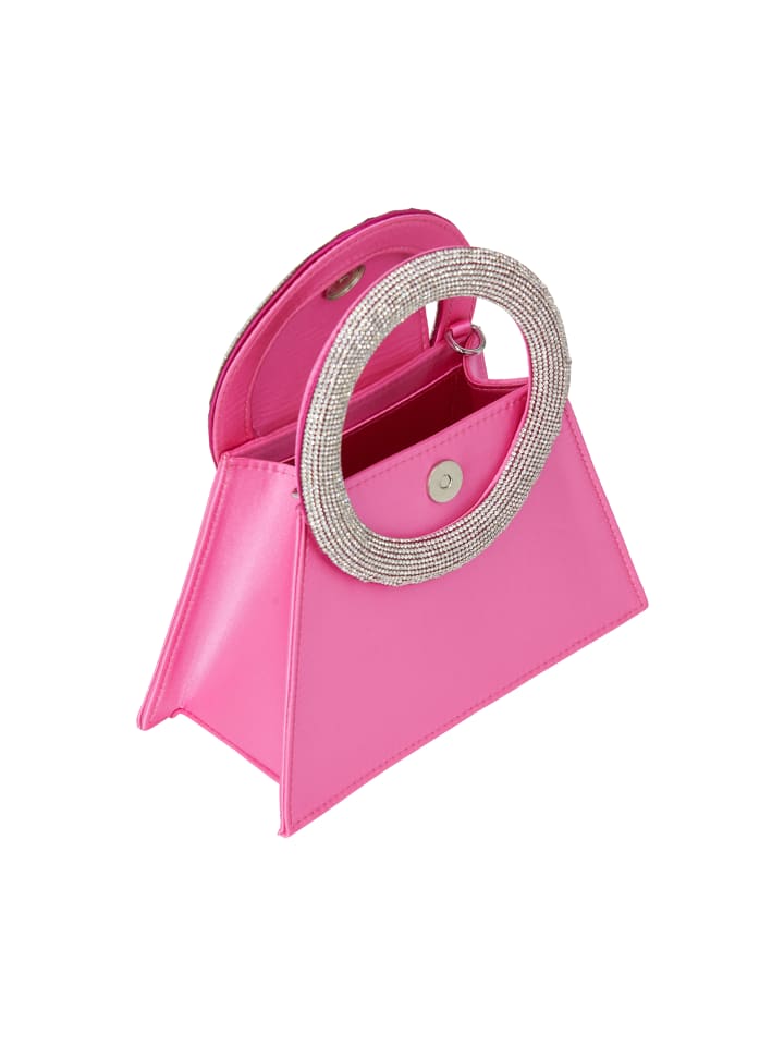 Эта сумочка может похвастаться уникальной геометрической формой с треугольным основанием, которое сужается кверху, придавая ей современную эстетику. Гладкий перед отличается структурированным дизайном и круглой ручкой, украшенной сверкающими украшениями для дополнительного гламура. С внутренним карманом, застежкой на кнопку и дополнительной цепочкой эта сумка идеально подходит для вечерних мероприятий.