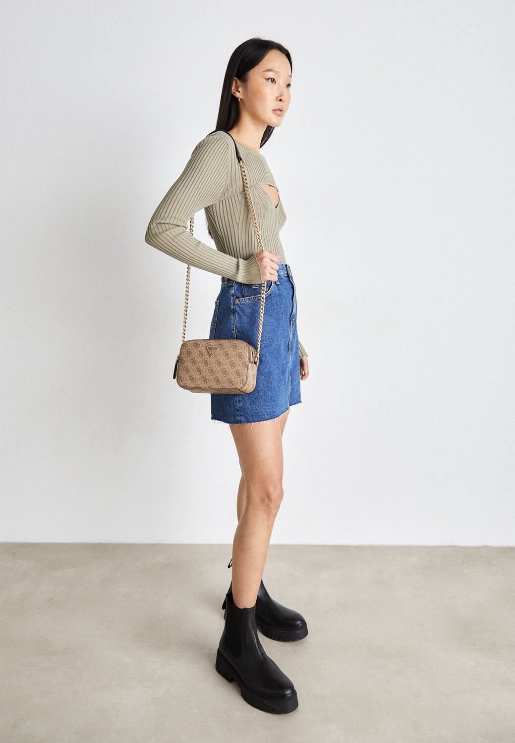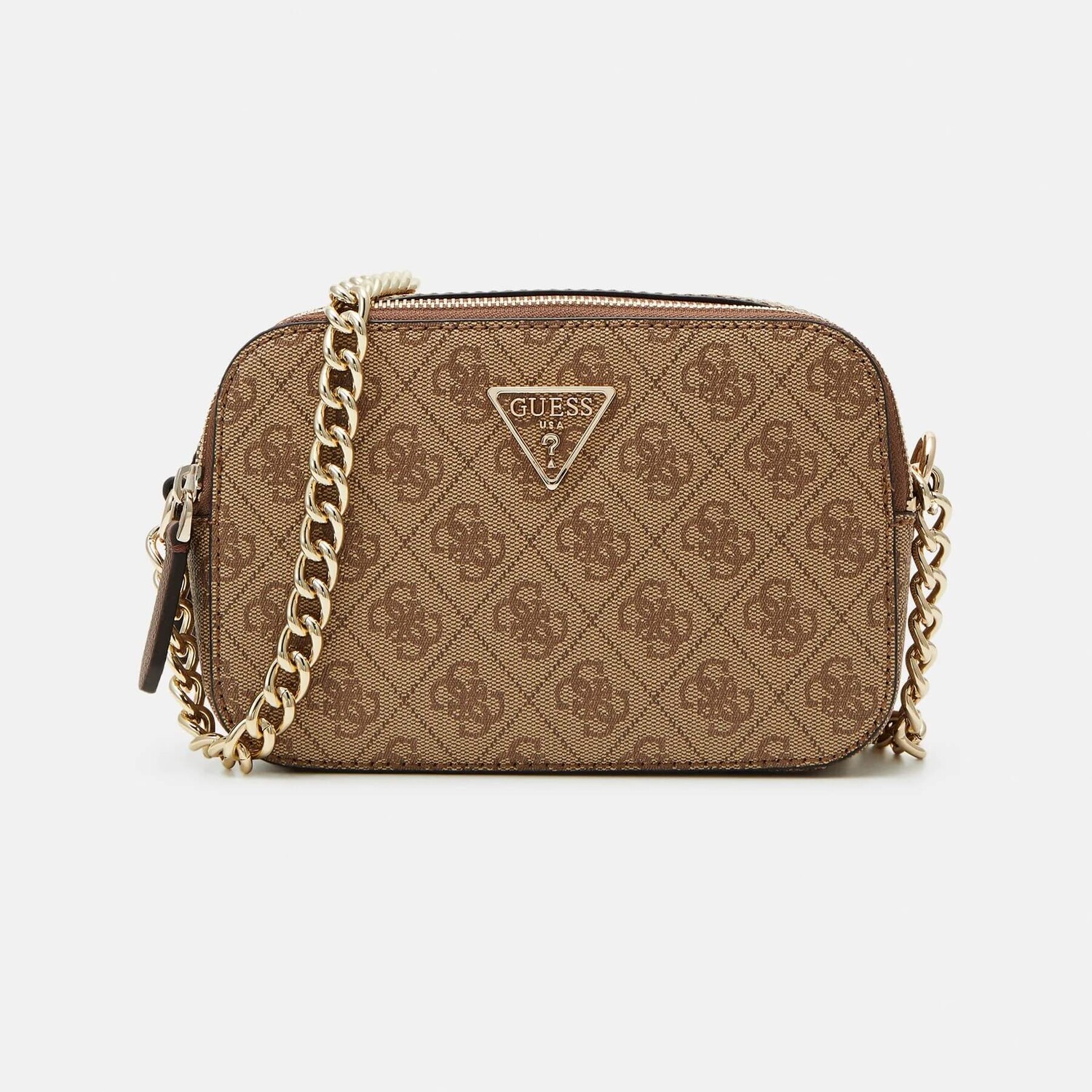 Сумка кросс-боди с принтом в виде логотипов 4G и треугольным логотипом Guess спереди.