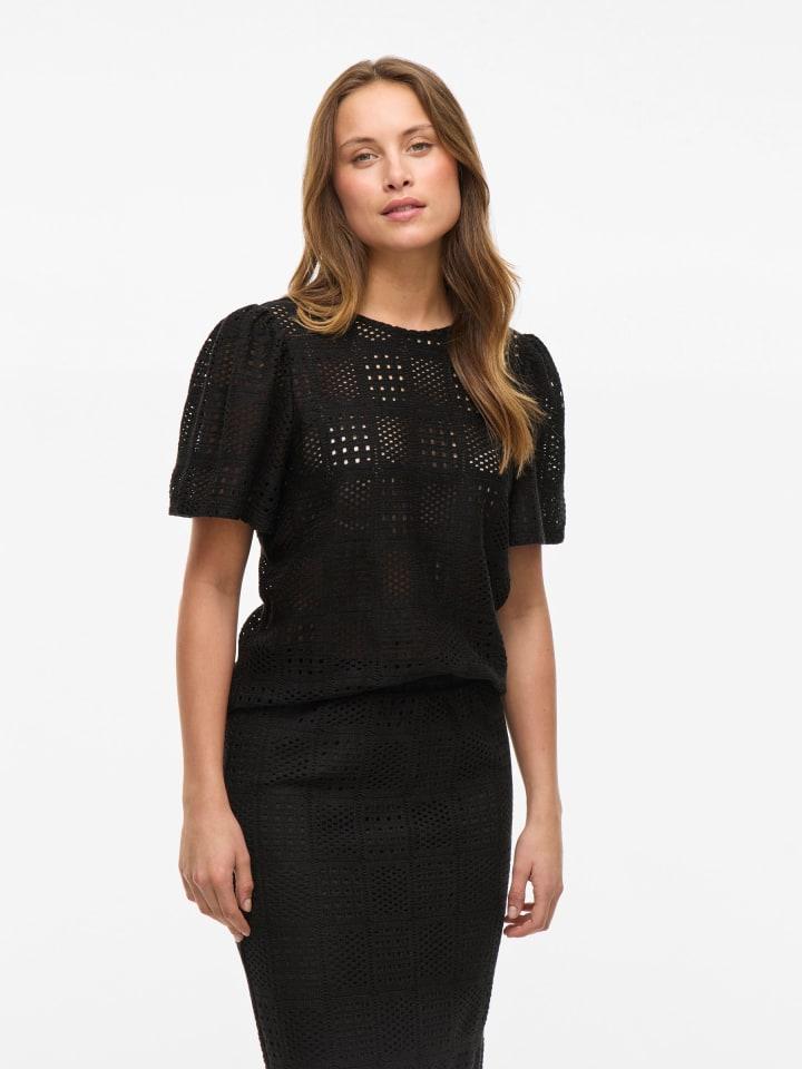 Изготовлено из переработанного материала / Оцените стильную универсальность с современным ажурным топом от VILA.
