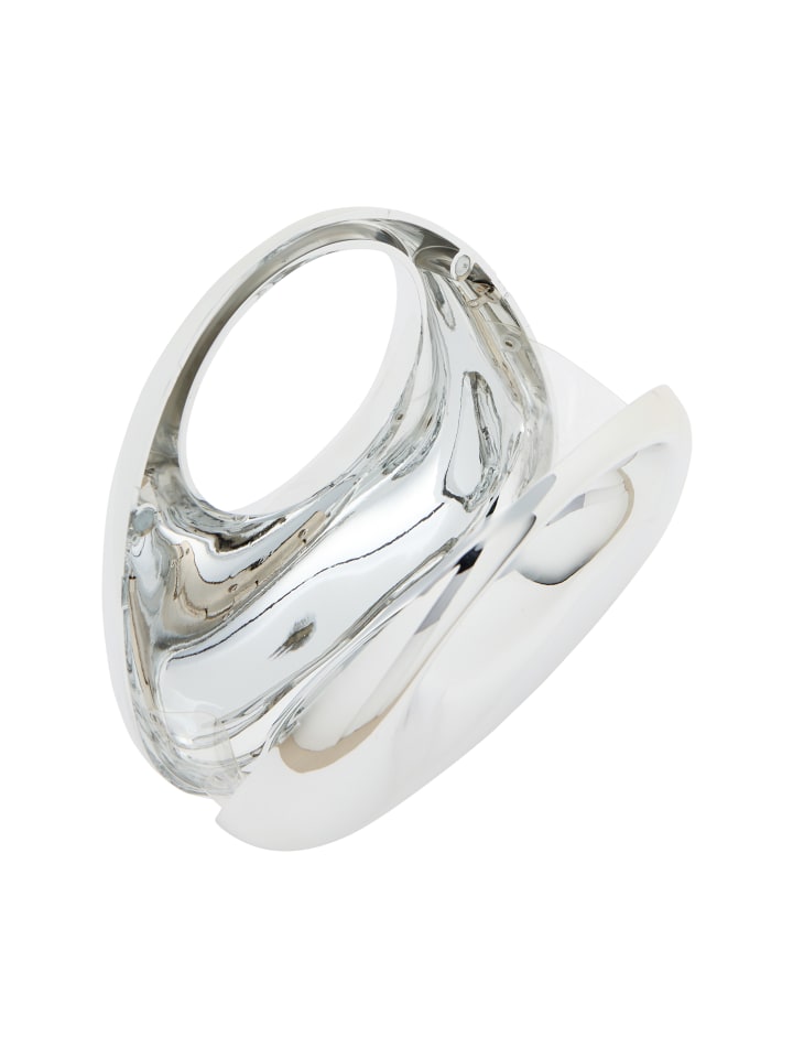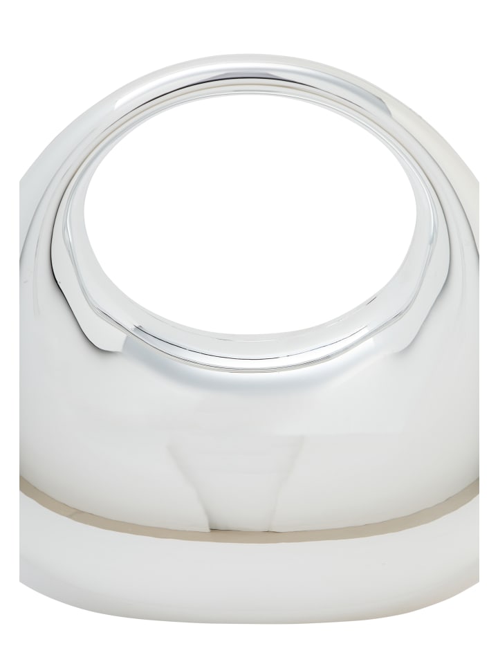 Откройте для себя эту стильную сумочку с гладкой, округлой формой. Выдающееся круглое отверстие обрамлено слегка закругленным , создавая органический дизайн, который излучает гармонию. Его глянцевая поверхность прекрасно отражает свет. Благодаря дополнительной цепочке для универсальности и однотонному узору без деталей, он идеально подходит для вечеринок.
