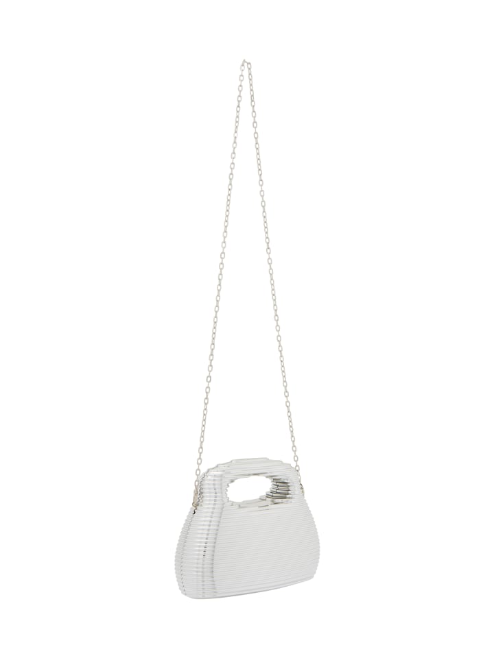 Подчеркните свой стиль с помощью этой скульптурной сумки с простым цветным узором и без деталей. Ее округлый корпус сужается для устойчивости, а встроенная ручка обеспечивает удобный захват. Декоративная застежка добавляет изюминку дизайну. Вместительное внутреннее пространство надежно удерживает предметы первой необходимости, что делает ее идеальной для любого праздничного случая. Дополнительная цепочка повышает универсальность.