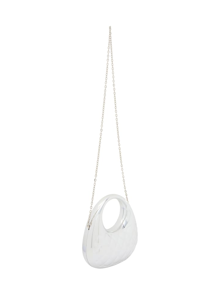Откройте для себя изысканную сумочку с гладким, округлым силуэтом и большим круглым отверстием для легкого доступа. Украшенная шикарным ромбовидным узором и рельефной строчкой, эта сумка излучает текстуру и стиль. Элегантный дизайн дополняется декоративной застежкой и дополнительной цепочкой, что делает ее идеальной для любого праздничного случая, сочетая элегантность с практичностью.