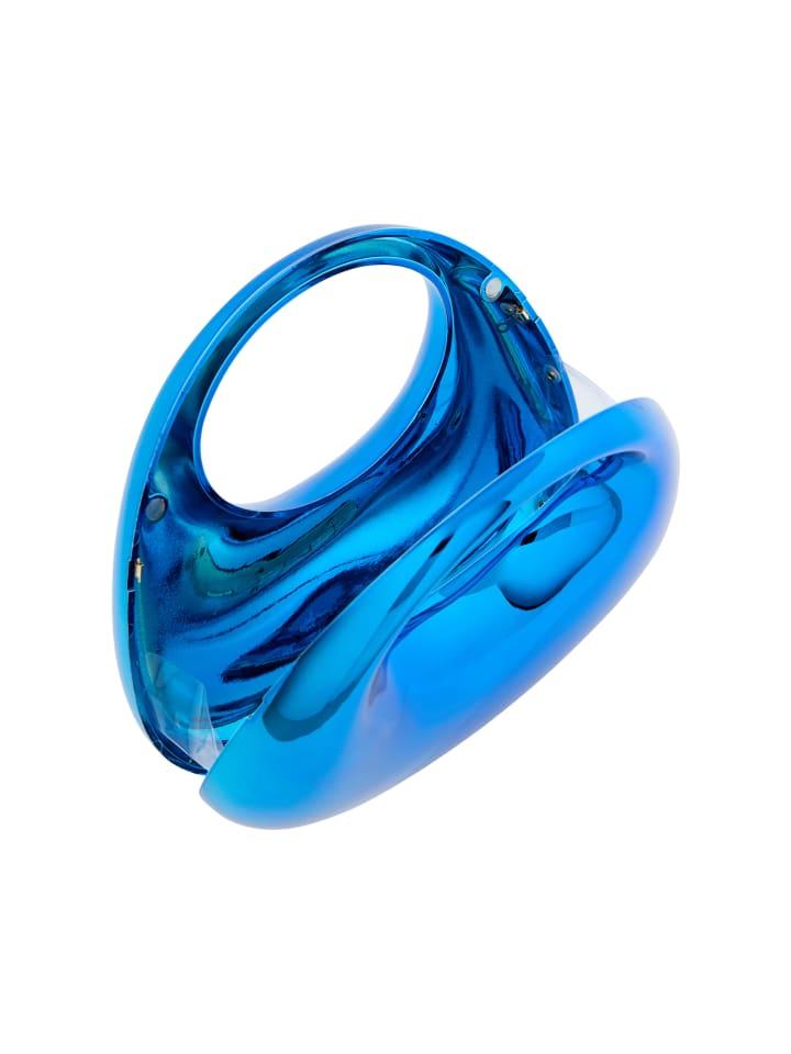 Откройте для себя эту стильную сумочку с гладкой, округлой формой. Выдающееся круглое отверстие обрамлено слегка закругленным , создавая органический дизайн, который излучает гармонию. Его глянцевая поверхность прекрасно отражает свет. Благодаря дополнительной цепочке для универсальности и однотонному узору без деталей, он идеально подходит для вечеринок.