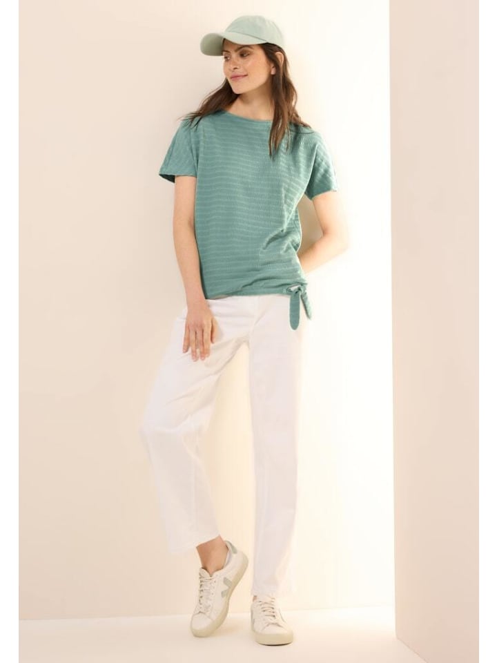 Эта женская футболка от CECIL впечатляет своей современной полосатой структурой и свободным узлом на подоле. Вырез-лодочка придает образу непринужденный вид, а удобная посадка делает рубашку любимым предметом гардероба. Рубашка с короткими рукавами, вырезом-лодочкой, узел на подоле, полосатая структура, удобная в носке, материал: 65% полиэстер, 32% хлопок, 3% эластан