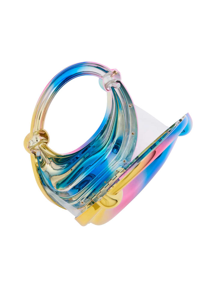 Откройте для себя эту потрясающую сумочку с шикарным полумесяцем и встроенной ручкой для непринужденного стиля. Глянцевая отделка отражает свет, а ее легкая, но прочная конструкция делает ее идеальной для ежедневного ношения. С просторным внутренним пространством, украшенным ярким многоцветным узором омбре, она идеально подходит для вечеринок. Включает дополнительную цепочку и декоративную застежку, не упуская ни одной детали.